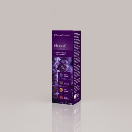 Suplement zawiera skoncentrowane metale ciężkie takie jak: mangan, wanad, cynk, nikiel, żelazo, chrom, kobalt, miedź. Pierwiastki śladowe występują w bardzo małych ilościach w wodzie morskiej jednak są bardzo ważne dla hodowli koralowców. MicroE pozwala na dozowanie metali ciężkich we właściwych proporcjach. Dzięki tym pierwiastkom śladowym koralowce będą miały ładne nasycone kolory oraz będą w bardzo dobrej kondycji. Stosując silne odpieniacze białek, które usuwają podczas pracy metale ciężkie, należy dbać o ich regularne uzupełnianie.